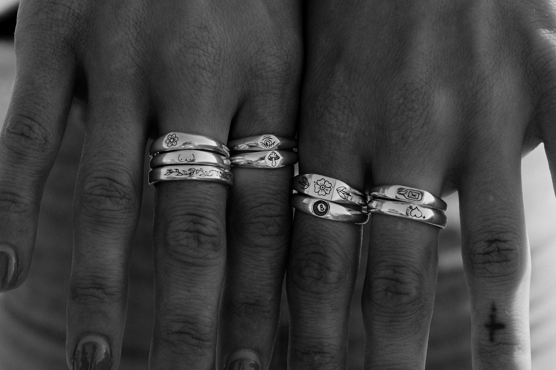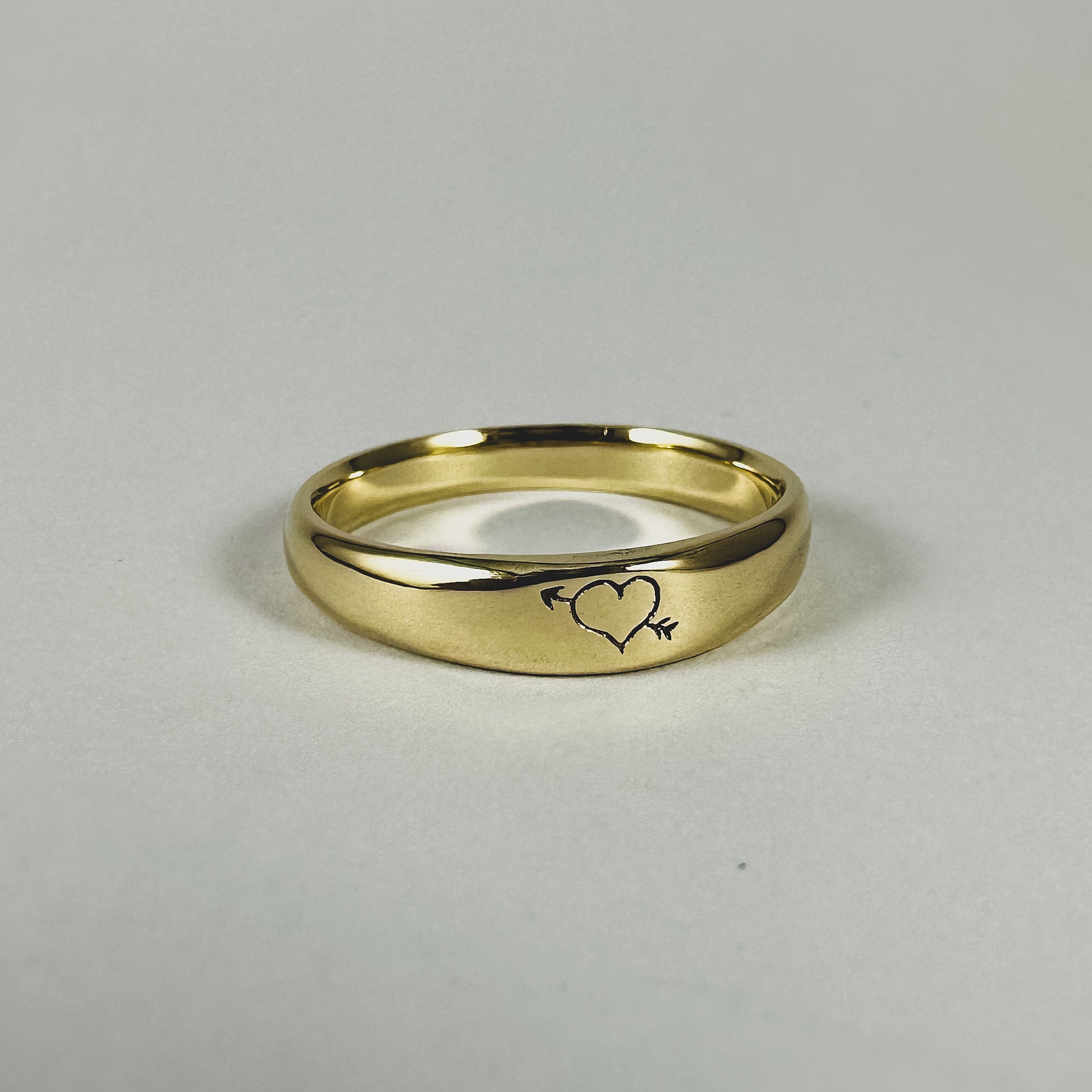 Inspired by Stick N' Poke tattoo designs the Cupid stacker ring is hand carved by us in wax and created using the "lost wax method" cast in solid 9ct. Yellow Gold ring with high polish finish.