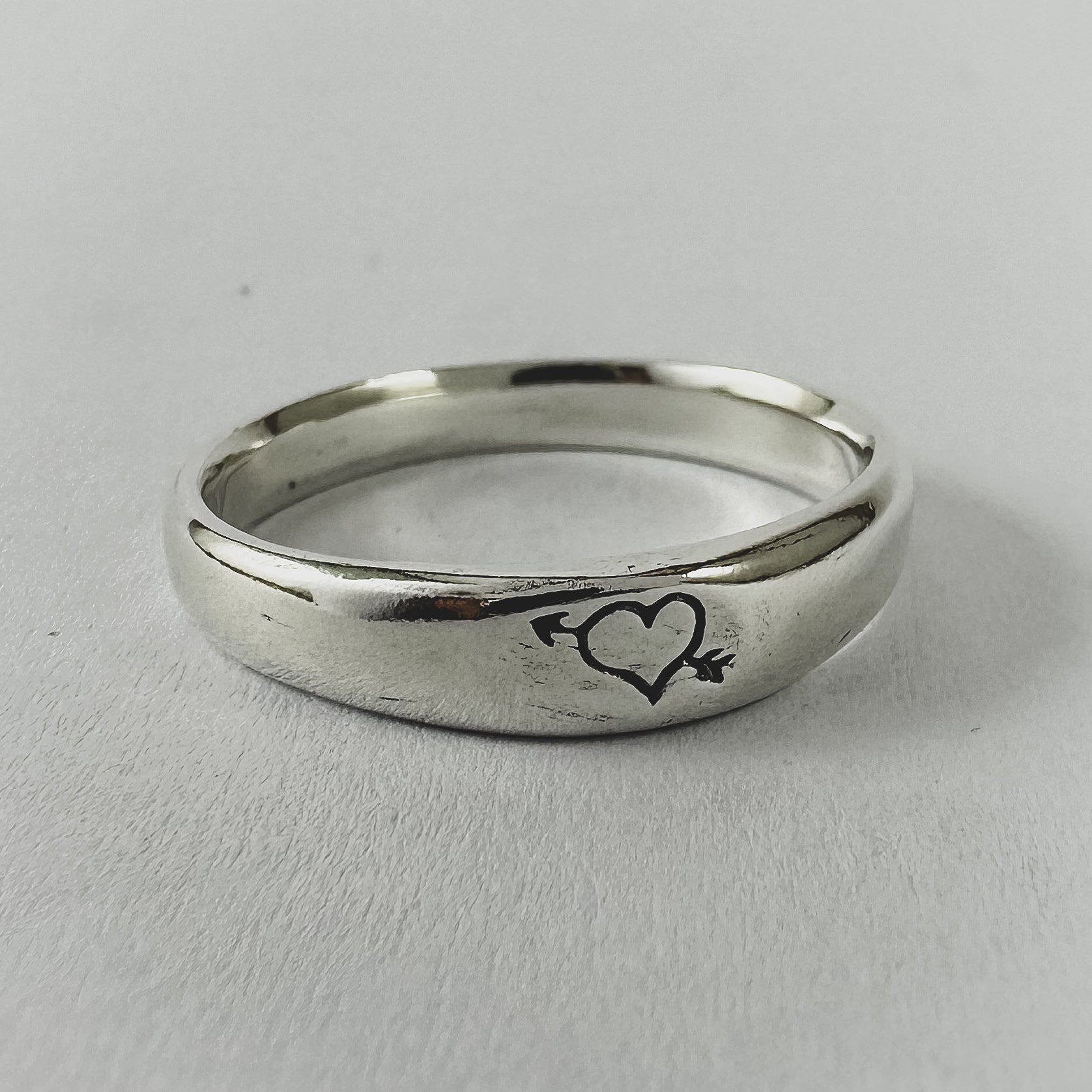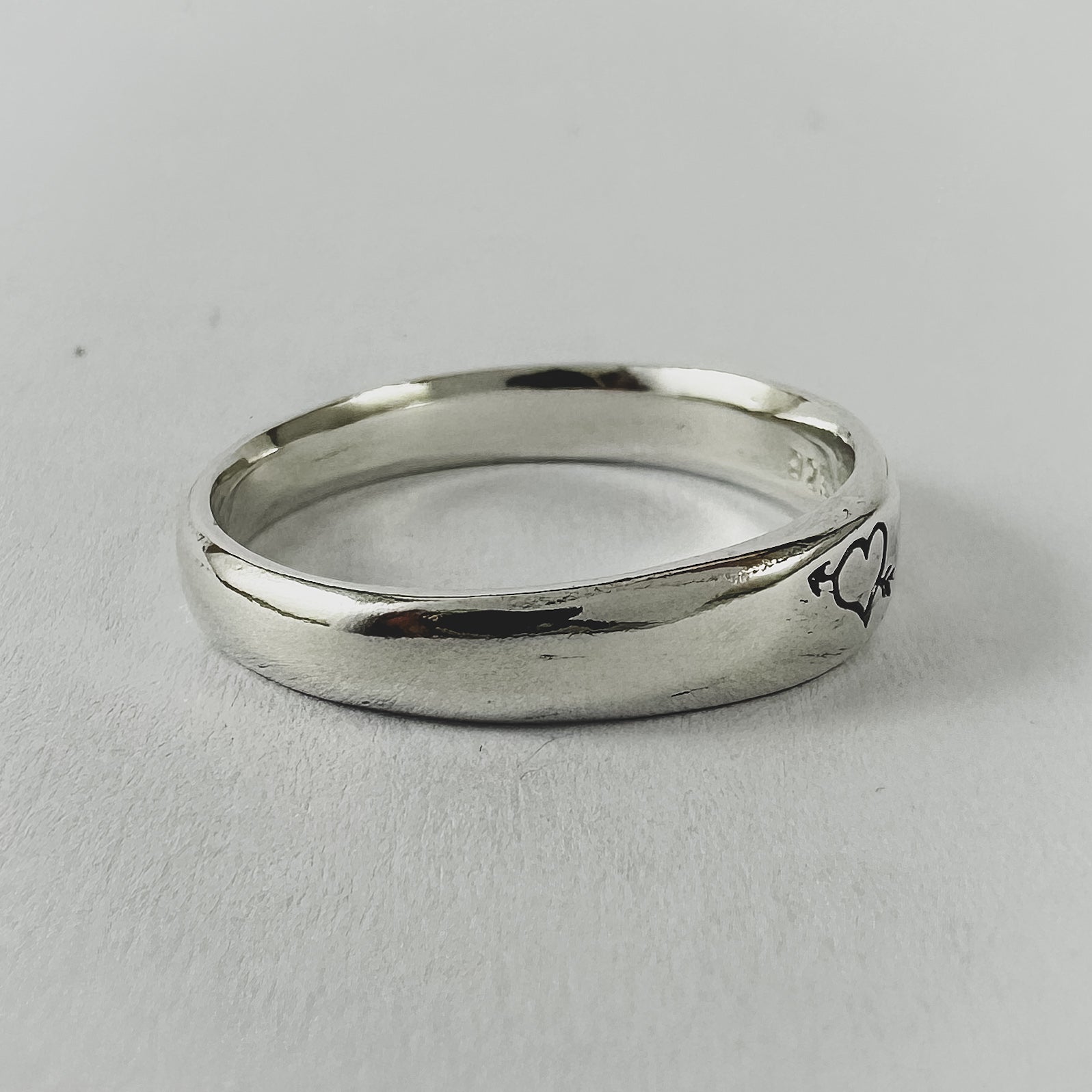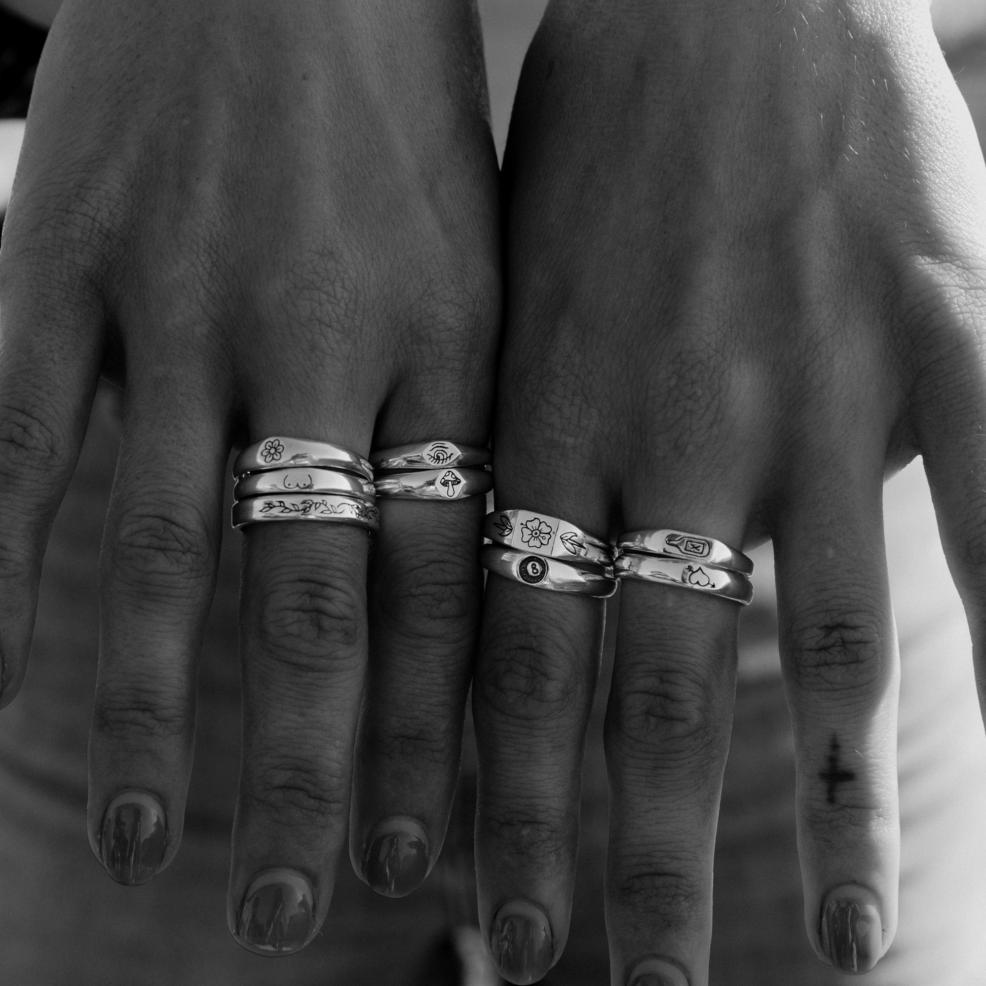 Inspired by Stick N' Poke tattoo designs the Cupid stacker ring is hand carved by us in wax and created using the "lost wax method" in sterling silver ring with oxidised, tumble and hand polish finish.