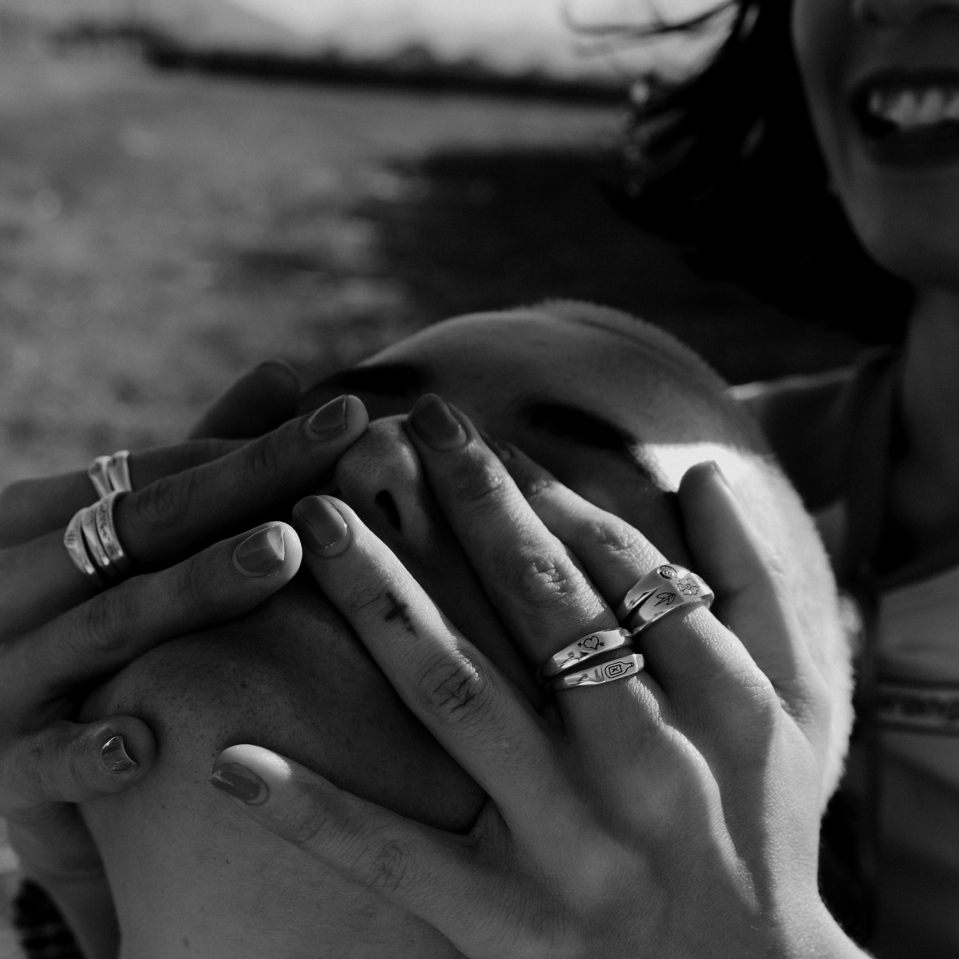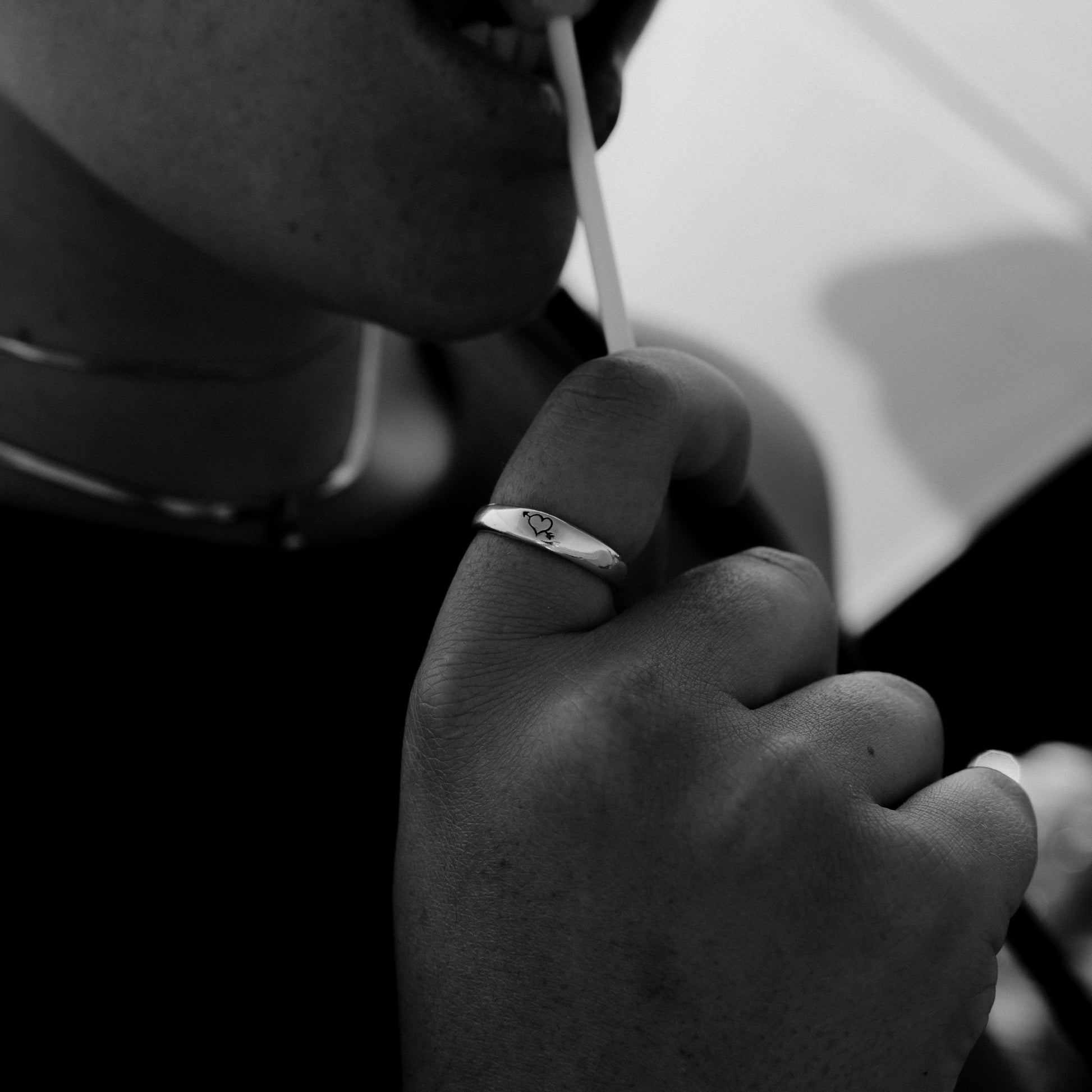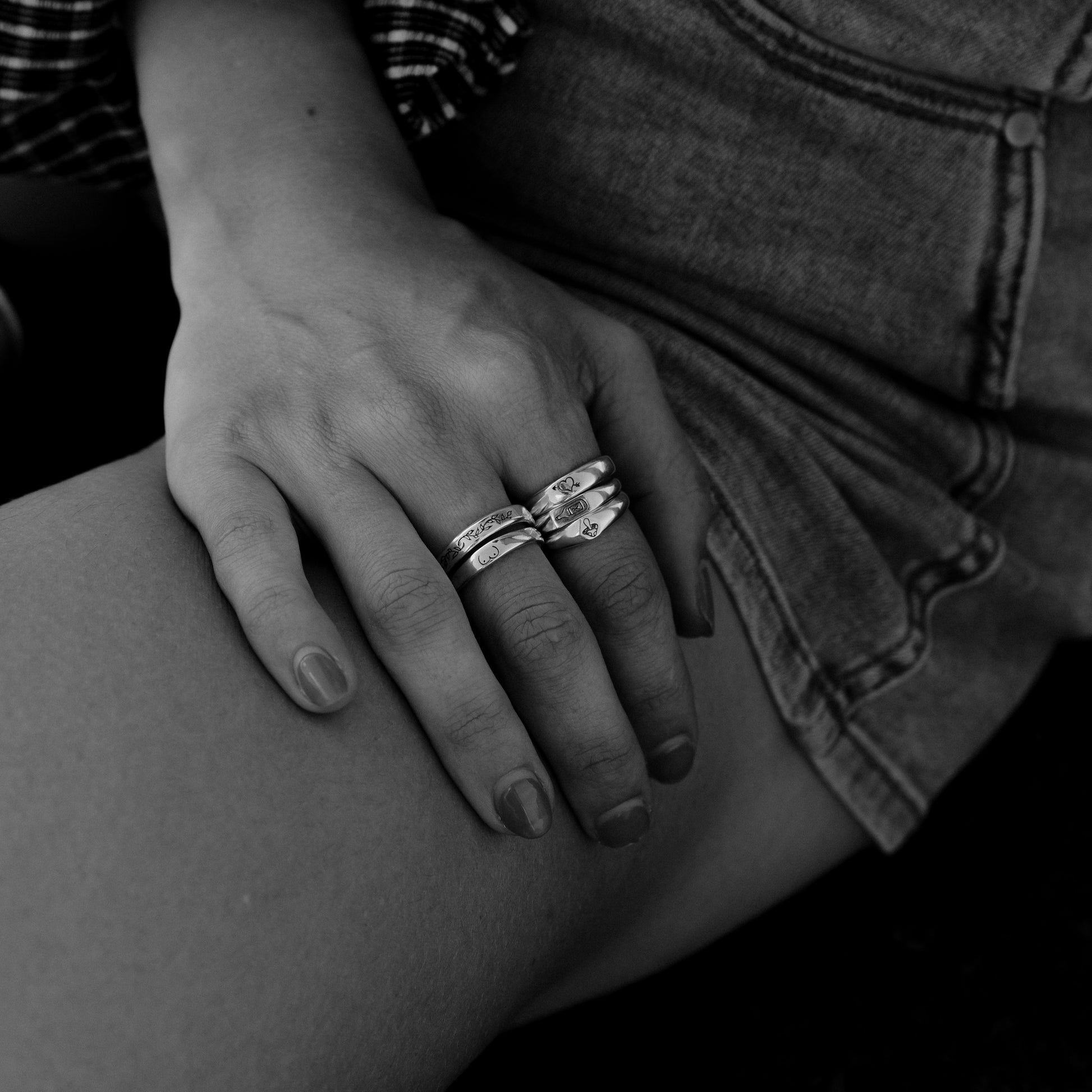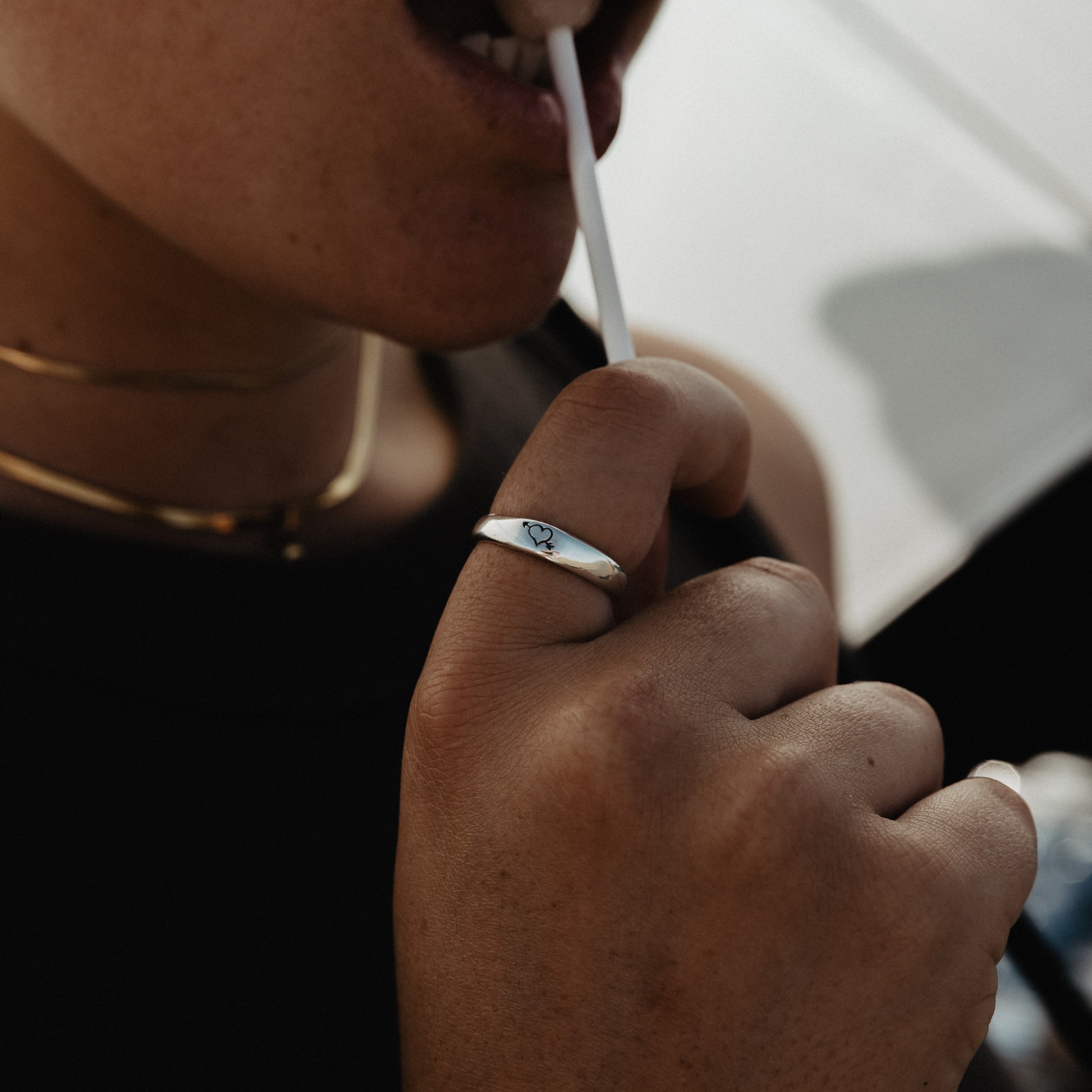 Inspired by Stick N' Poke tattoo designs the Cupid stacker ring is hand carved by us in wax and created using the "lost wax method" in sterling silver ring with oxidised, tumble and hand polish finish.