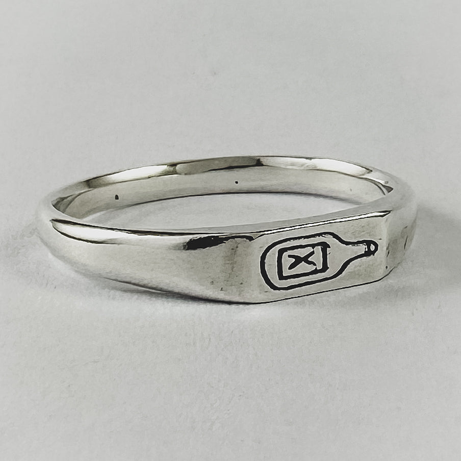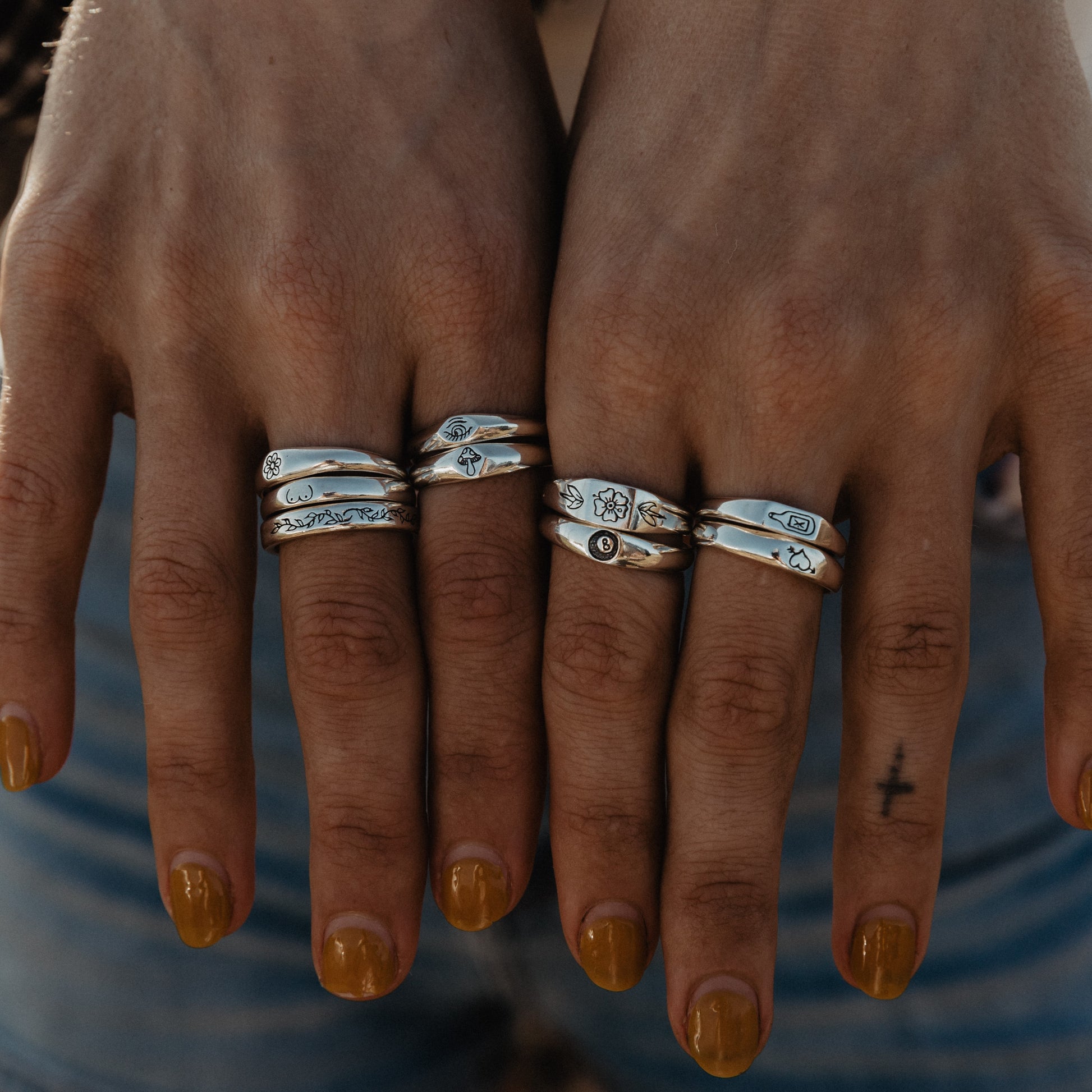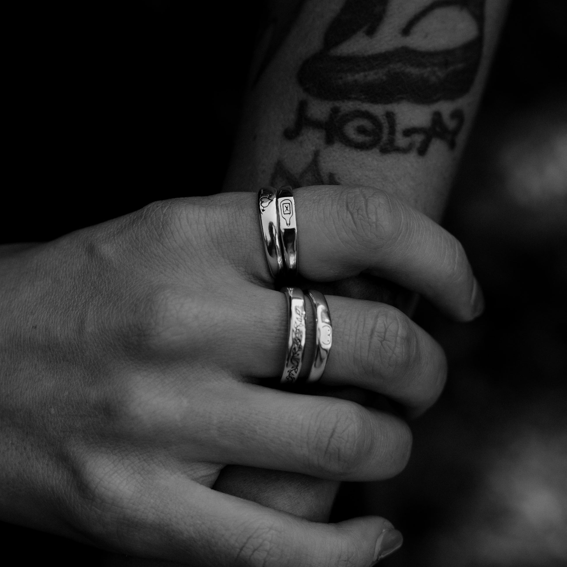Inspired by Stick N' Poke tattoo designs the Drunk Again stacker ring is hand carved by us in wax and created using the "lost wax method" in sterling silver ring with oxidised, tumble and hand polish finish.