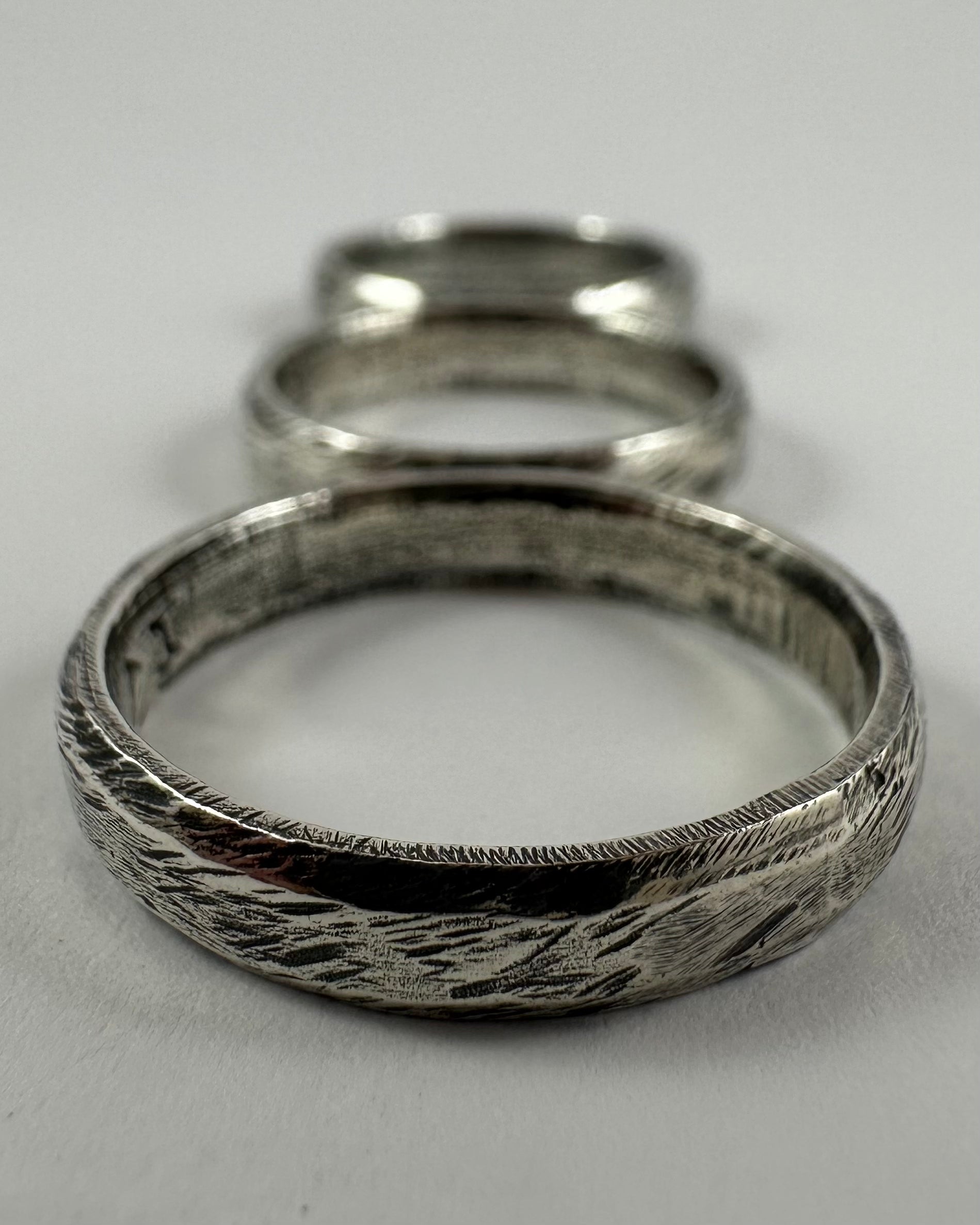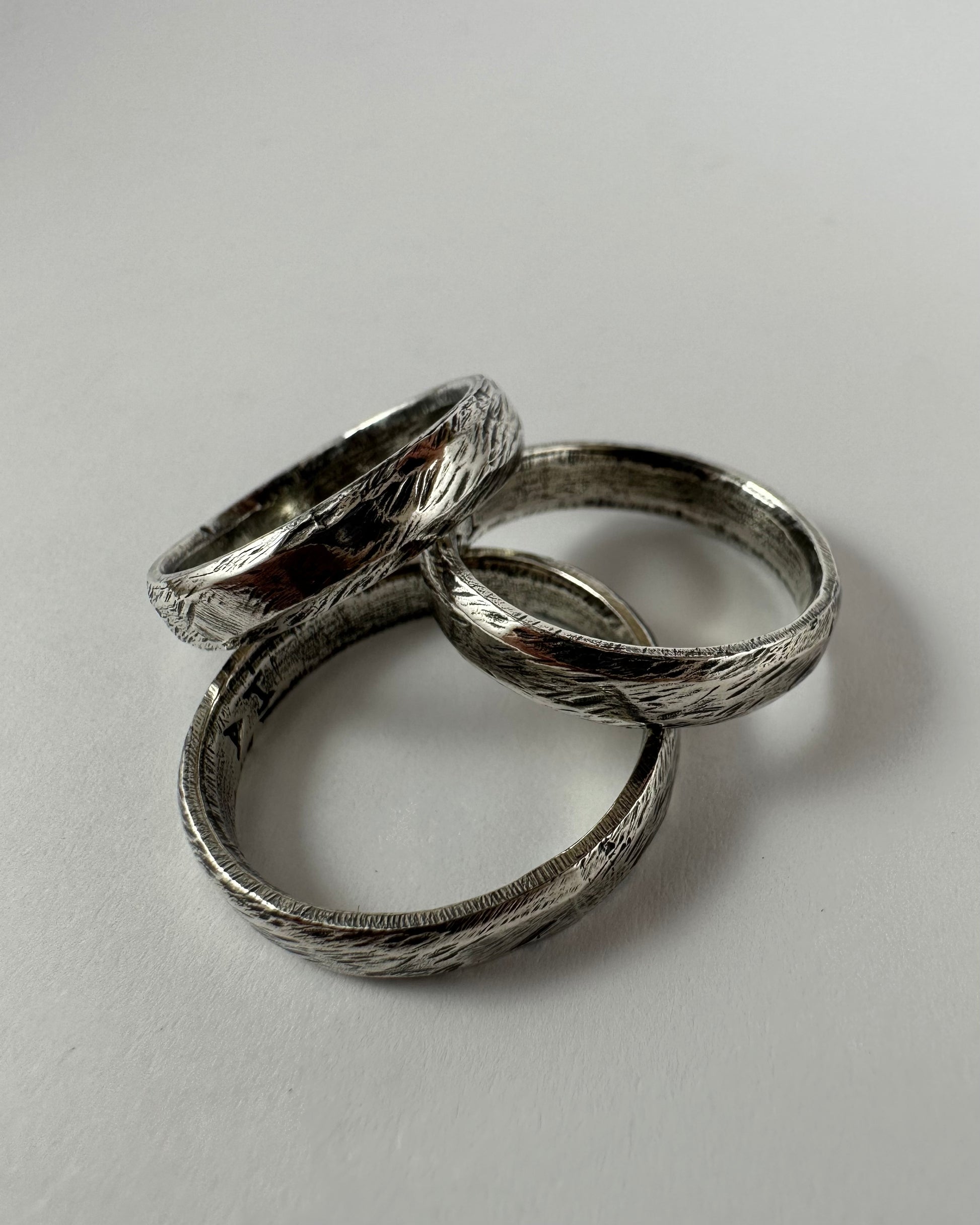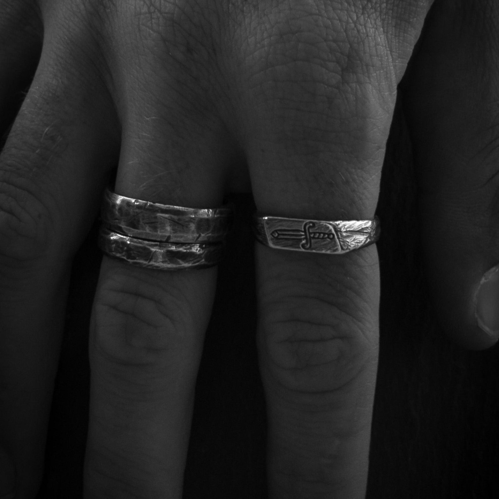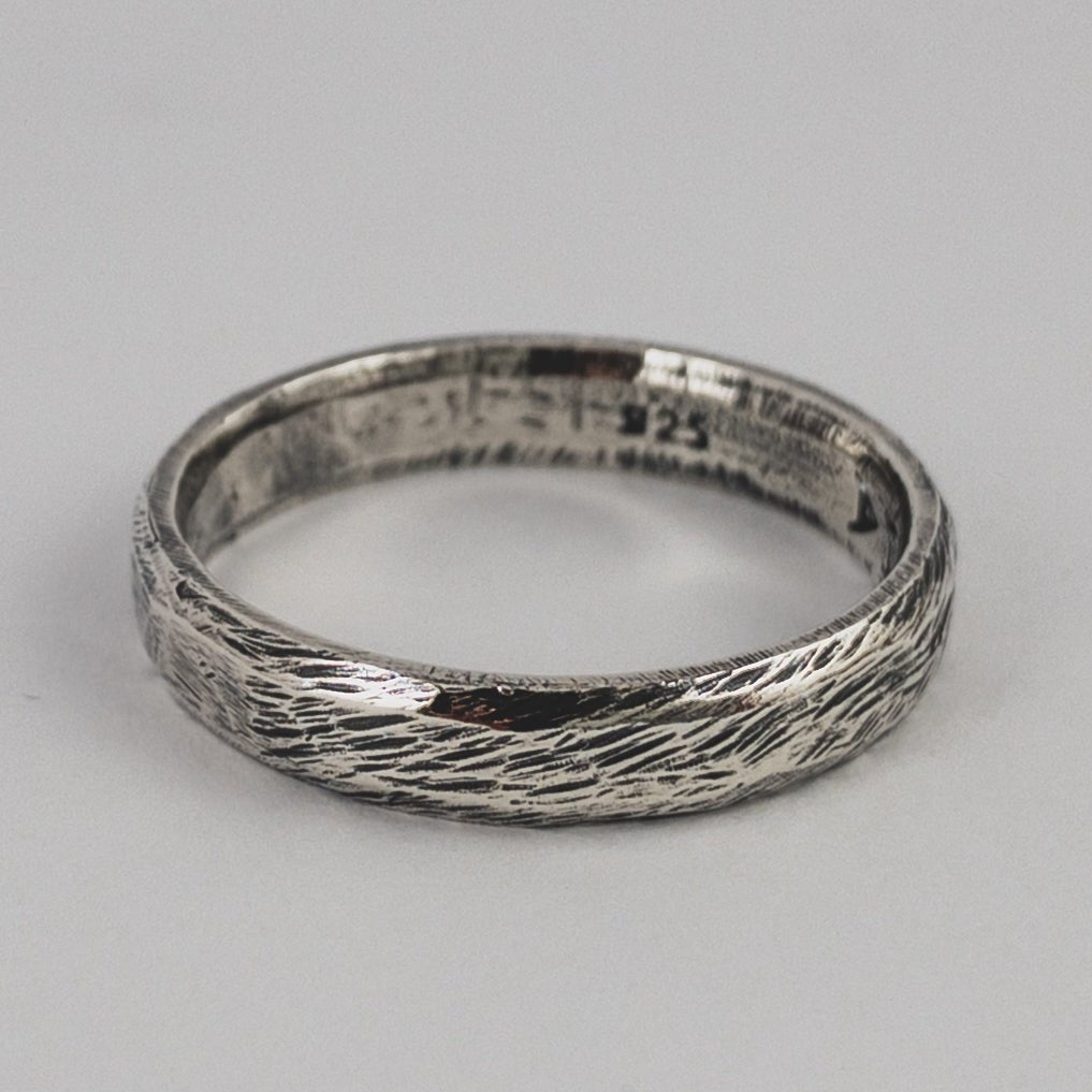 Hand carved sterling silver ring with oxidised, tumble and hand polish finish.
