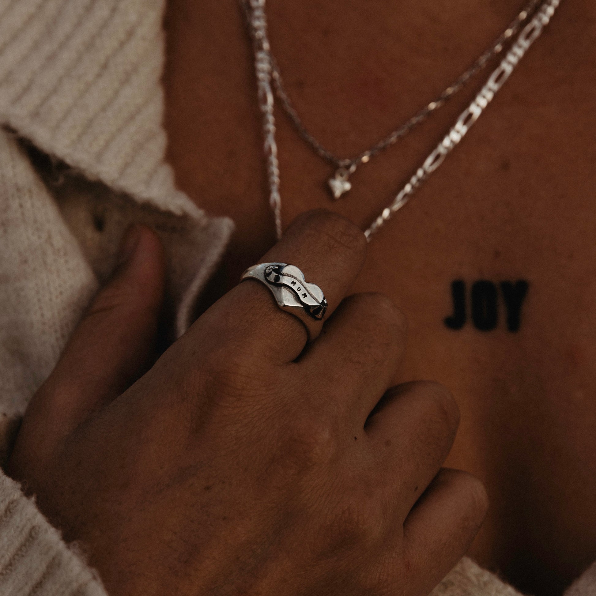 Hand carved by us in wax and created using the "lost wax method" cast in solid sterling silver ring hand finished by us in our studio in Newcastle, Australia.