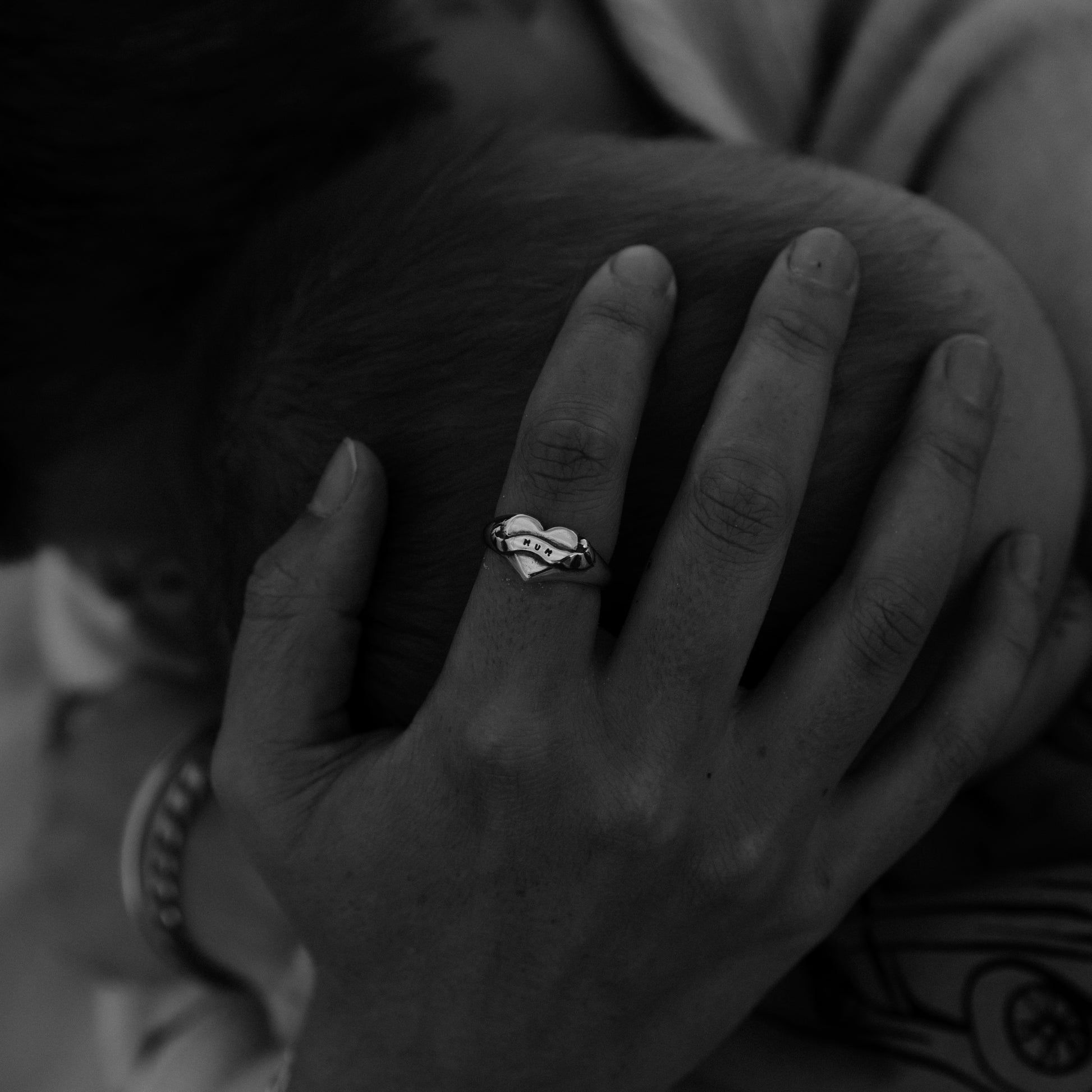 Inspired by classic heart and scroll tattoos rooted in traditional tattoo maritime culture, this design pays homage to the inked tattoos once worn by sailors. Often bearing the name of a loved one across the scroll, these tattoos served as sentimental reminders of home and those they cherished during long voyages at sea.