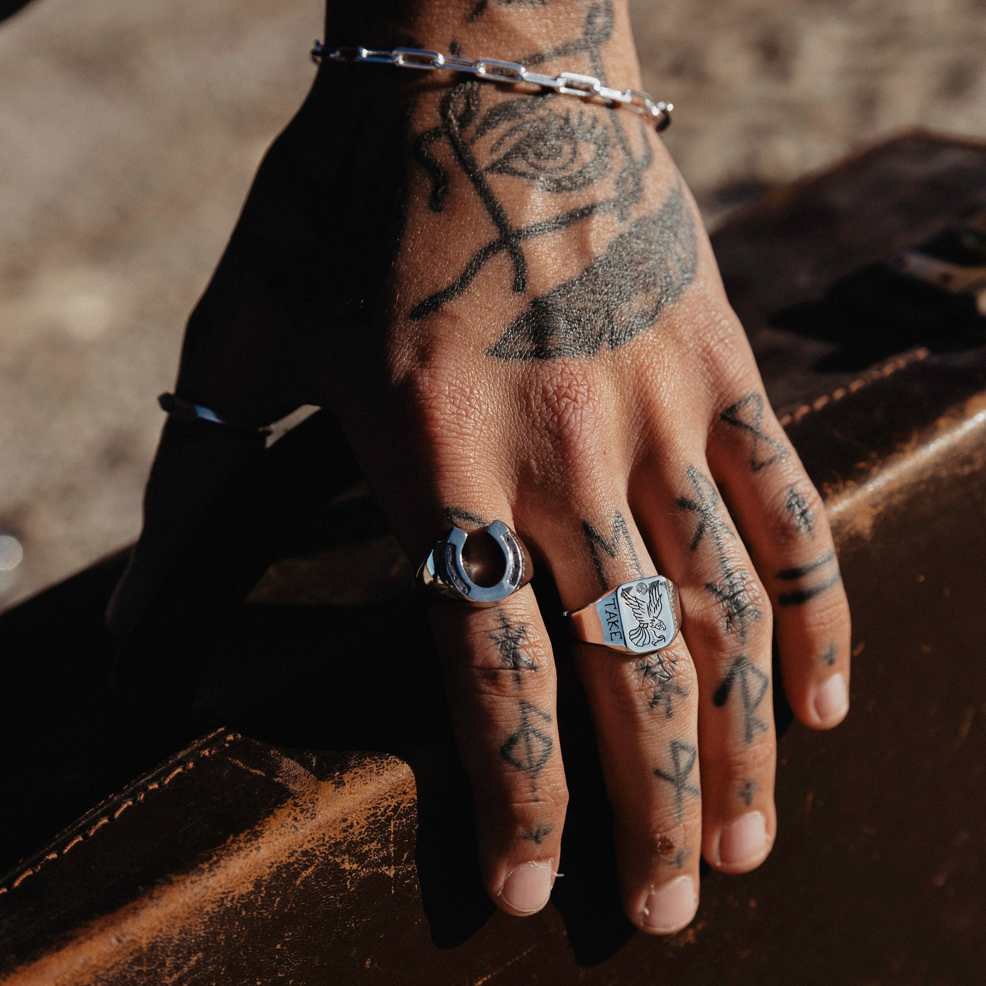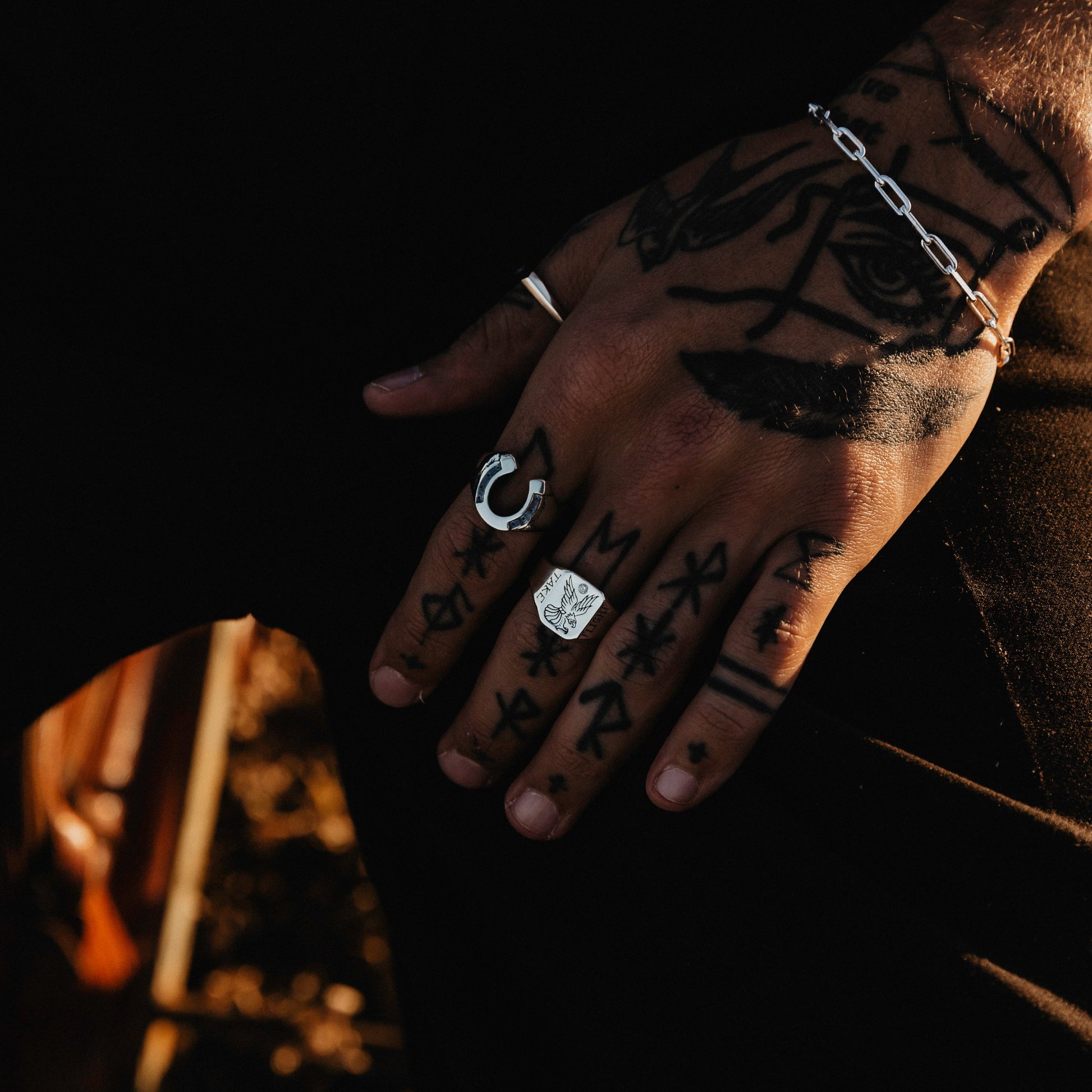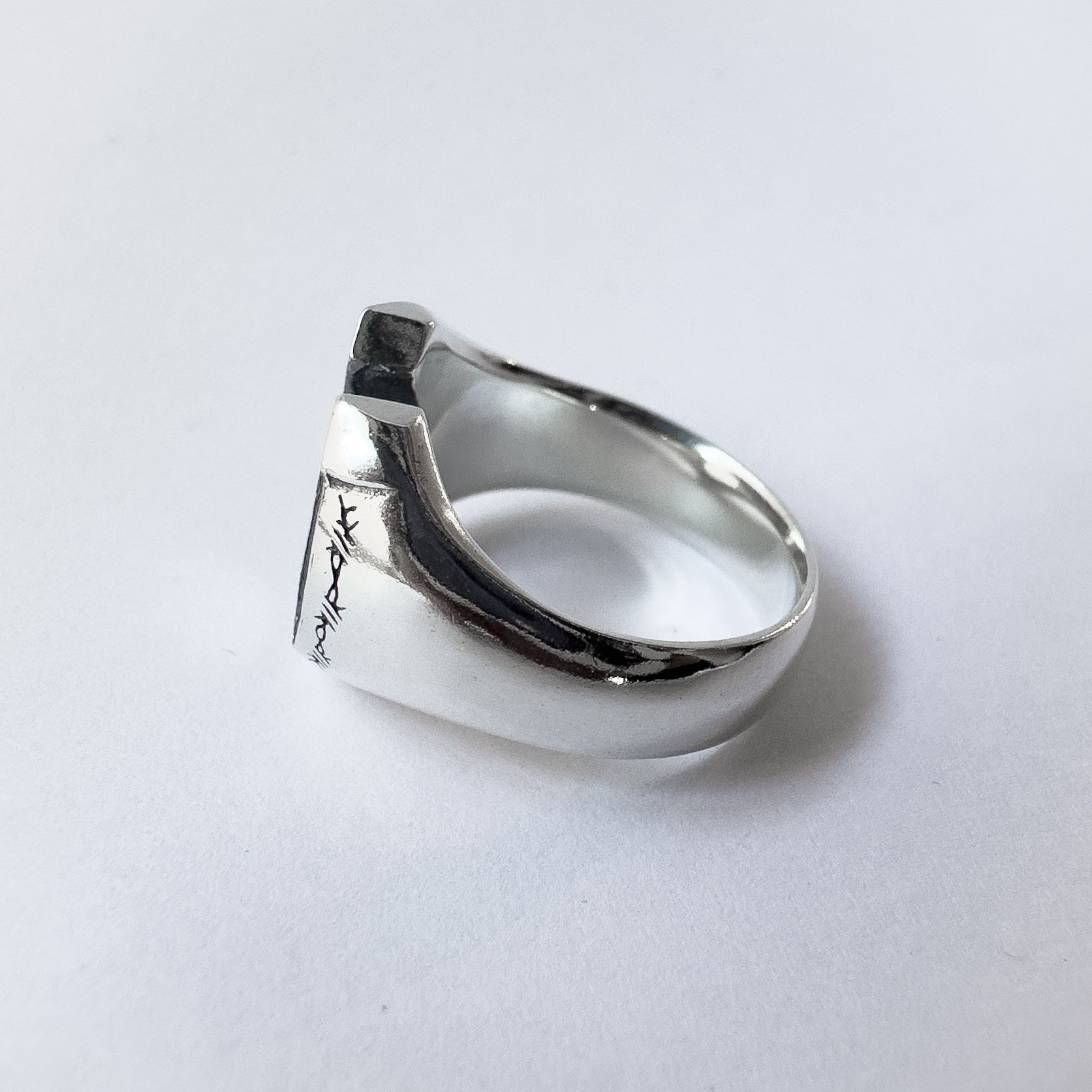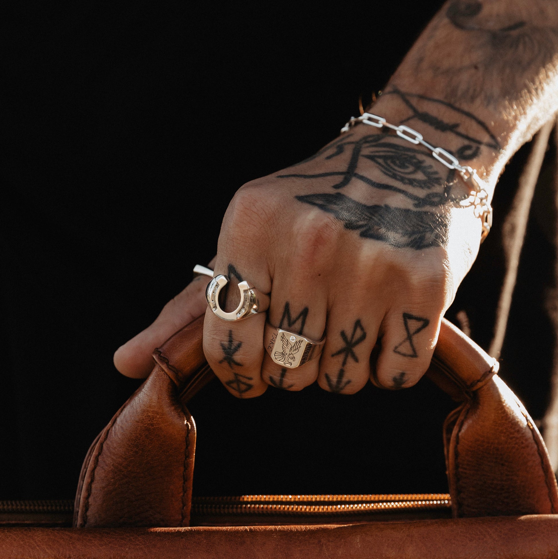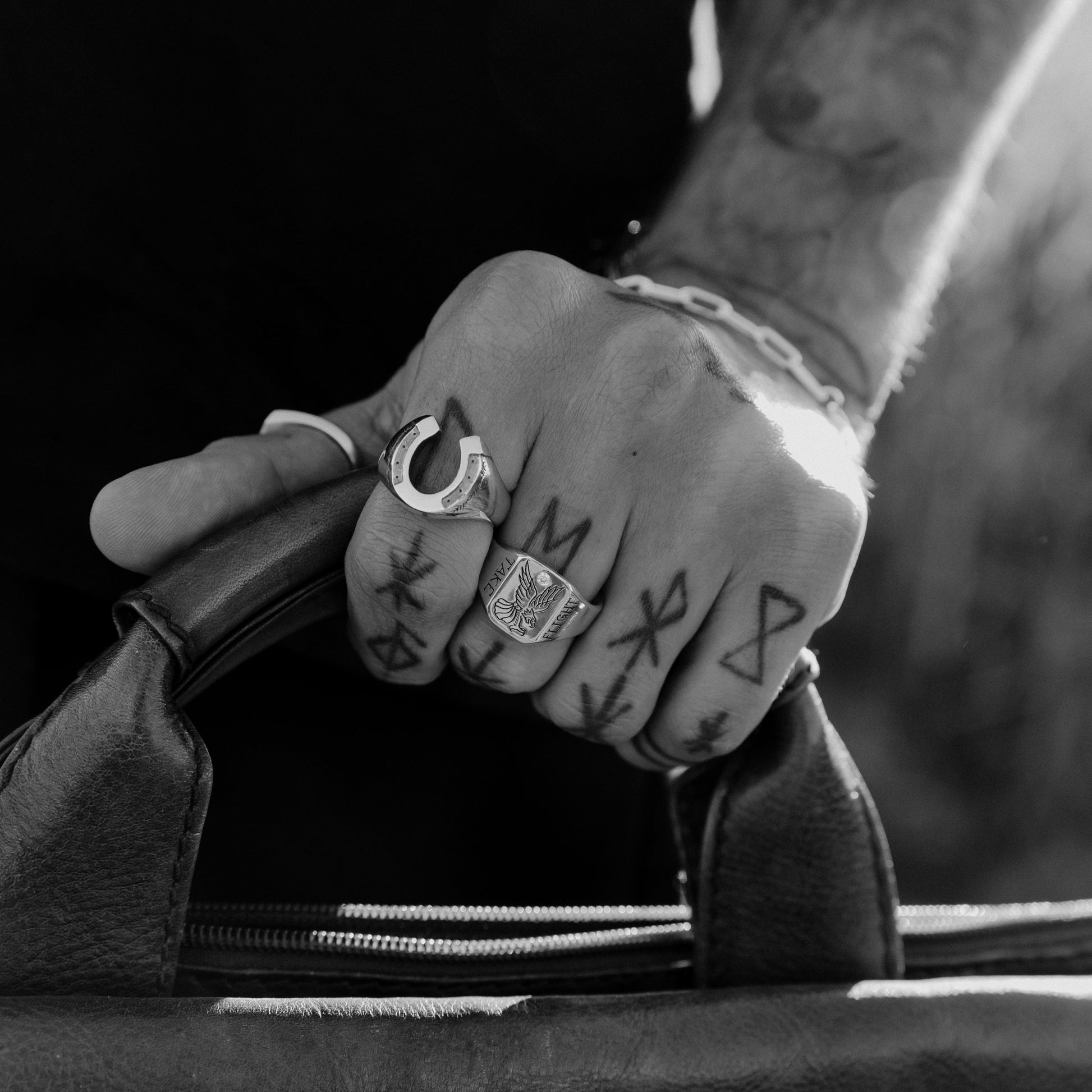 The Dead Ivy Horseshoe ring is hand carved in wax and created using the "lost wax method" in sterling silver ring with oxidised, tumble and hand polish finish.