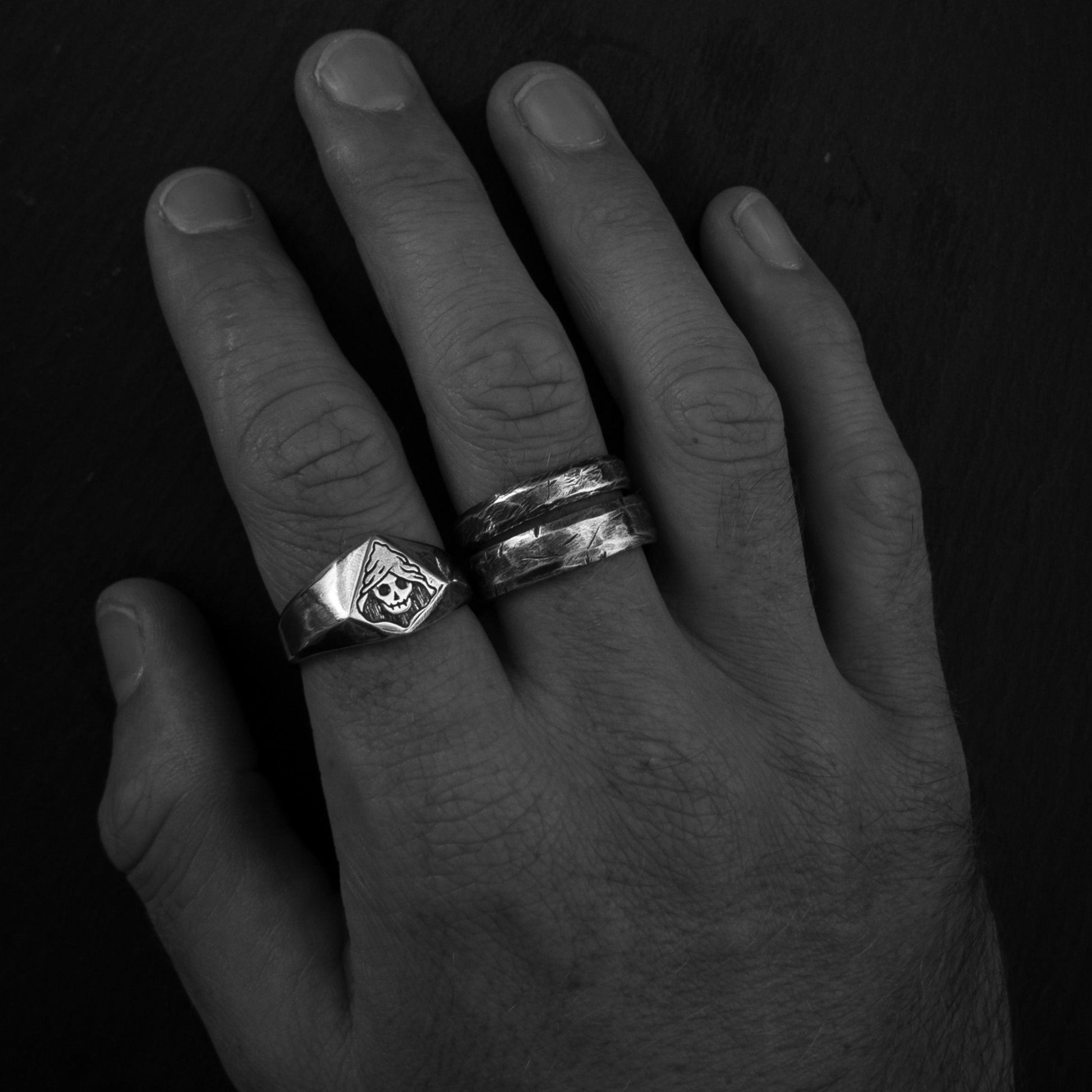 Hand carved sterling silver ring with oxidised, tumble and hand polish finish.