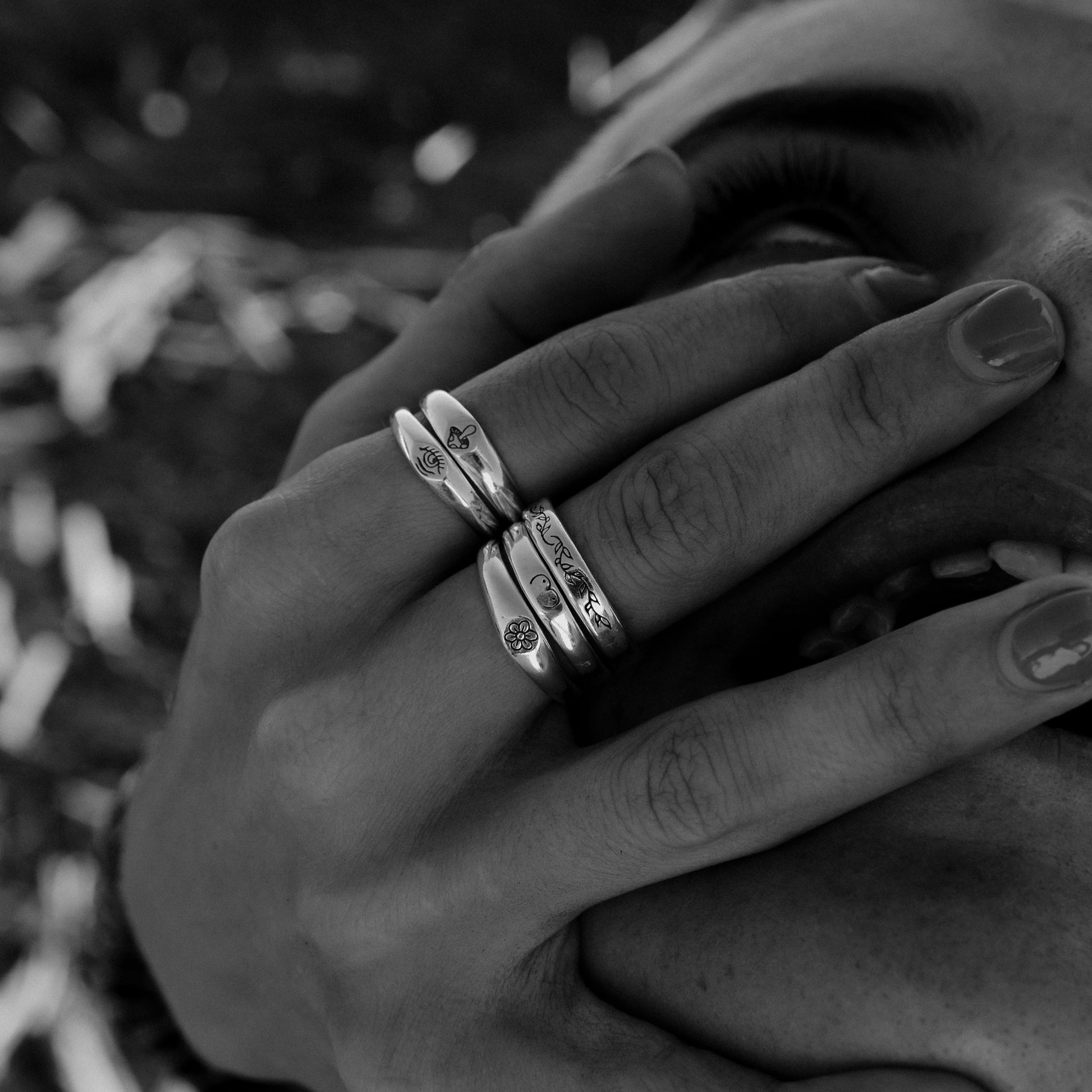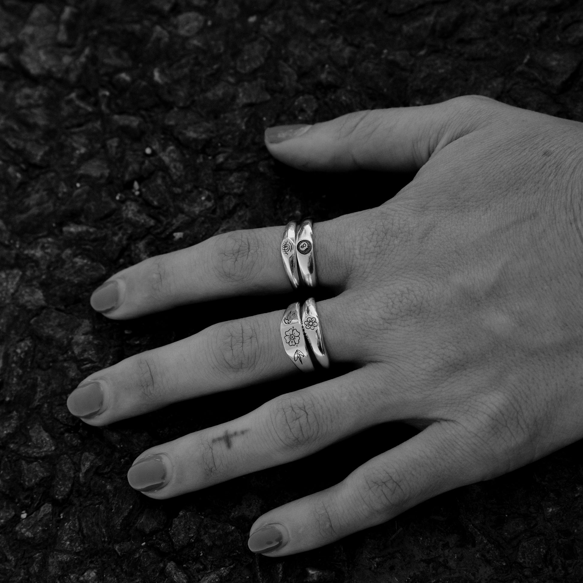 Inspired by Stick N' Poke tattoo designs the Third Eye stacker ring is hand carved by us in wax and created using the "lost wax method" cast in solid 9ct. Yellow Gold ring with high polish finish.