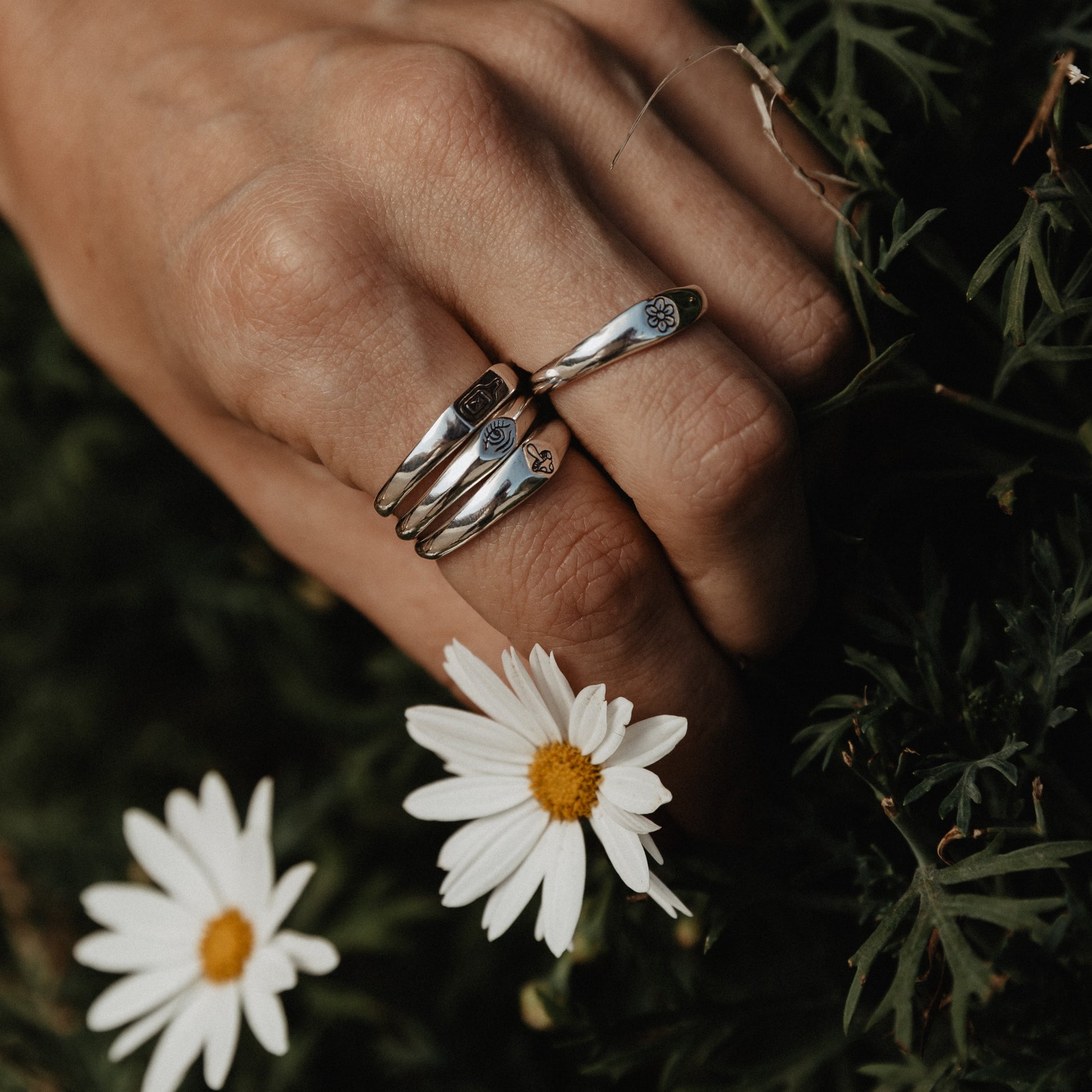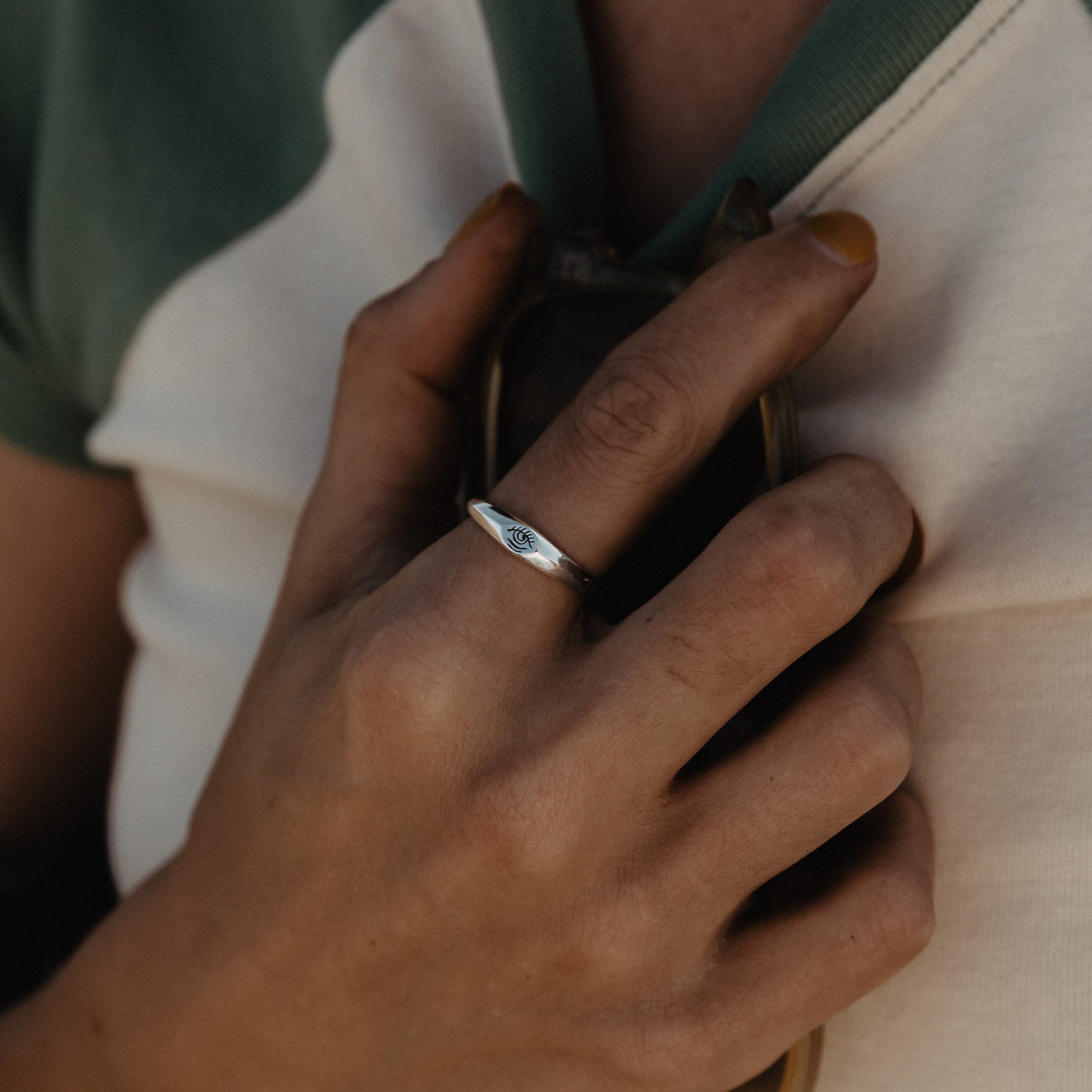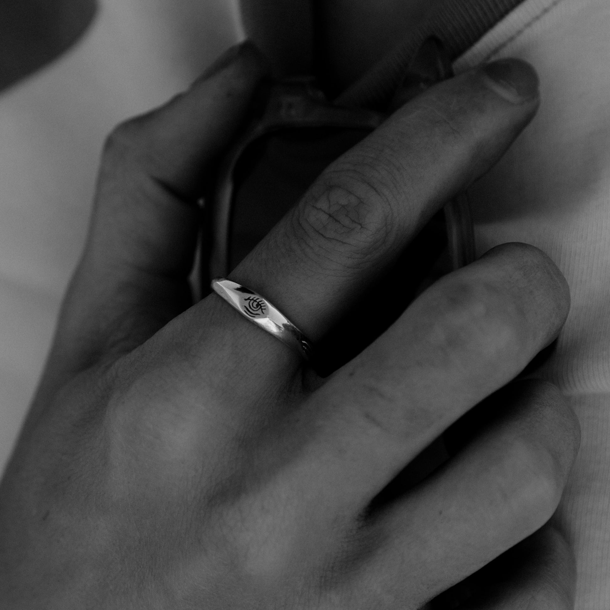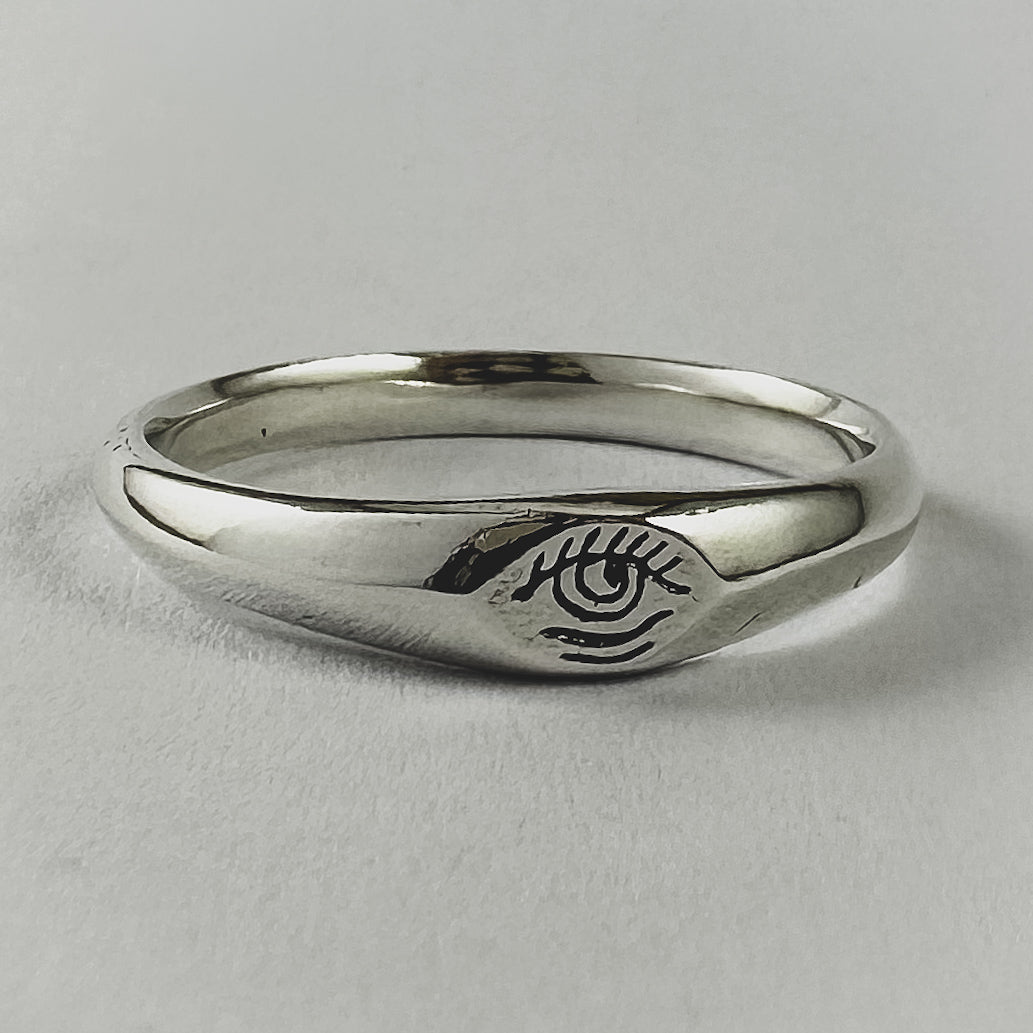 Inspired by Stick N' Poke tattoo designs the Third Eye stacker ring is hand carved by us in wax and created using the "lost wax method" in sterling silver ring with oxidised, tumble and hand polish finish.