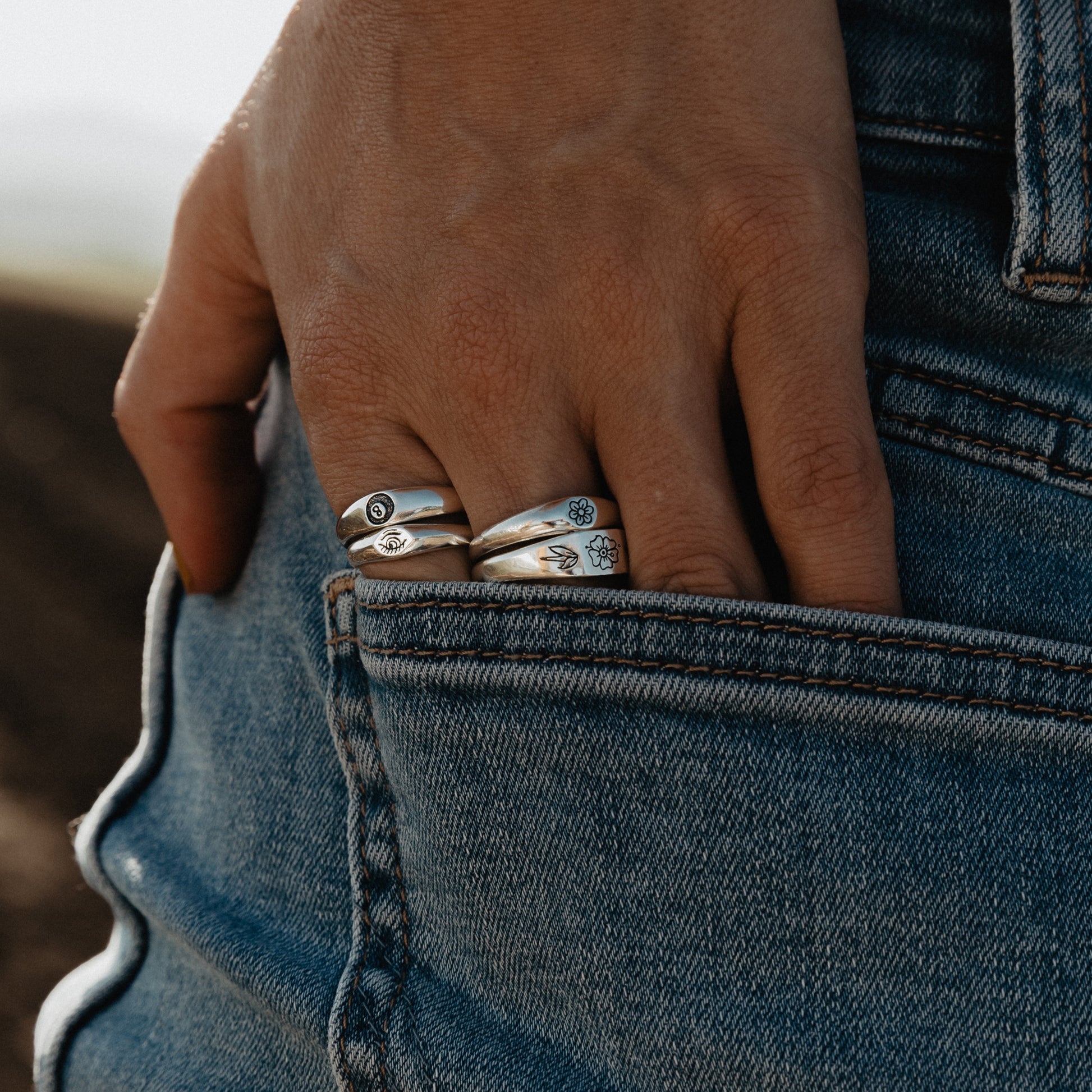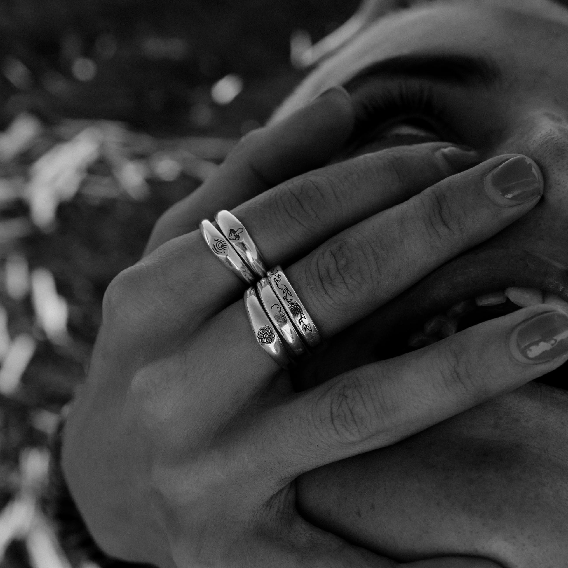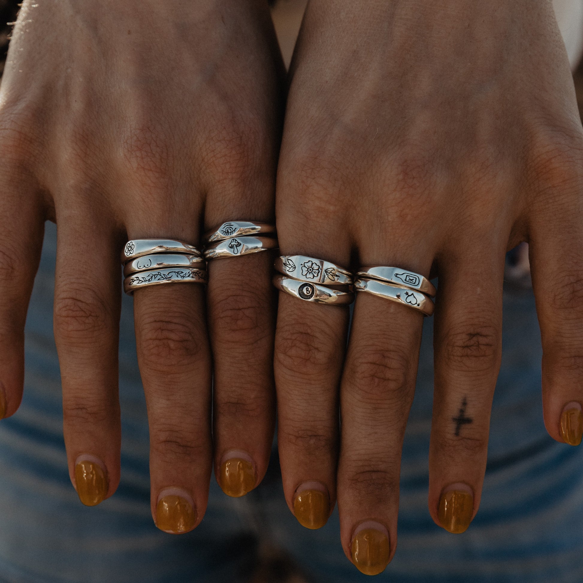 Inspired by Stick N' Poke tattoo designs the Third Eye stacker ring is hand carved by us in wax and created using the "lost wax method" in sterling silver ring with oxidised, tumble and hand polish finish.