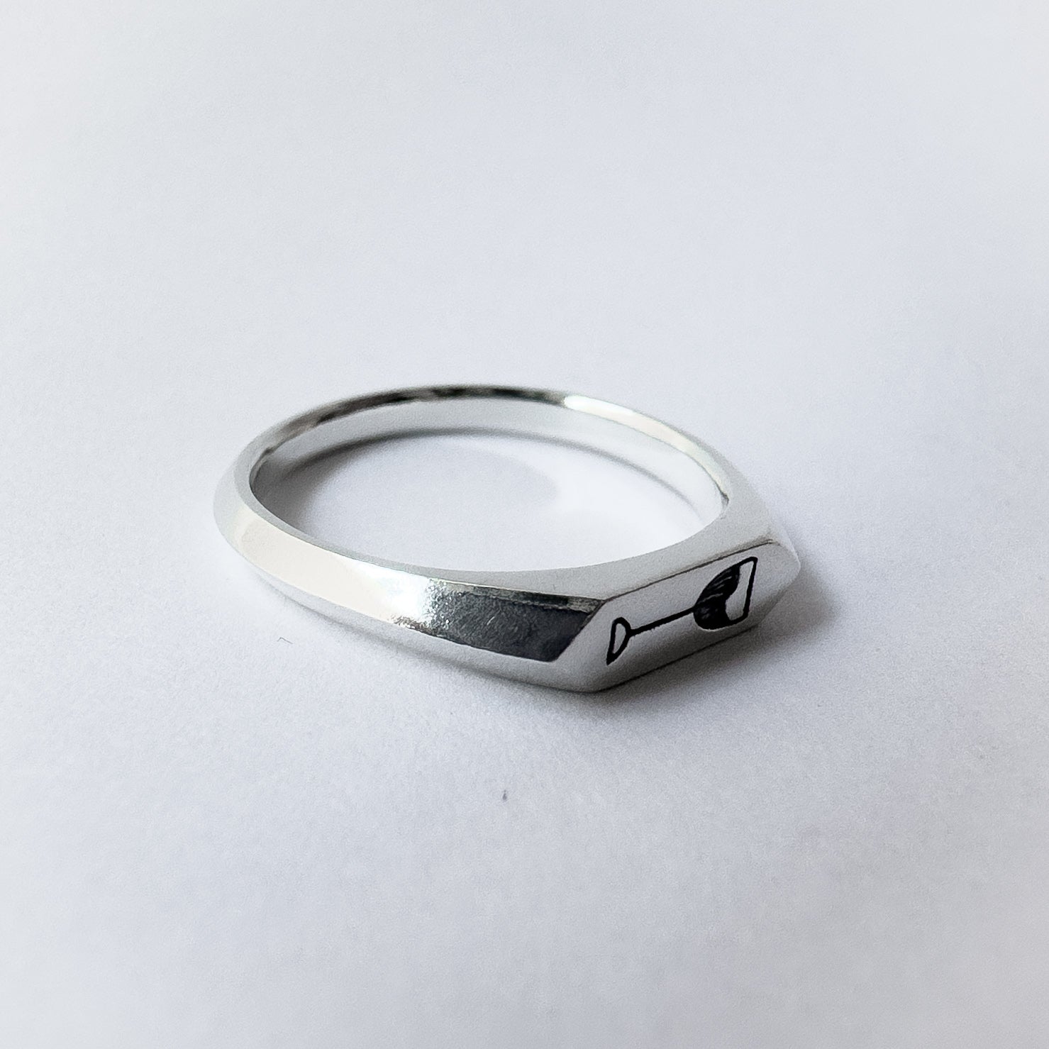 Featuring a small ring face that points to a knife edge band that goes all the way around the ring.